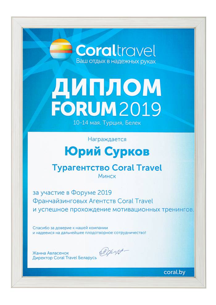 Сертификат соответствия № BY/112 04.03. 071.01 00109 выдан ГУ «Национальное агентство по туризму» Министерства спорта и туризма Республики Беларусь. Компания Travel House прошла добровольную сертификацию услуг. Ежегодно аудиторы ГУ «Национальное агентство по туризму» проверяют офисы продаж, уровень квалификации специалистов компании, внутреннюю документацию, договоры оказания туристических услуг, стандарты работы и подтверждают соответствие услуг компании актуальным требованиям Закона о туризме и другому законодательству Республики Беларусь.